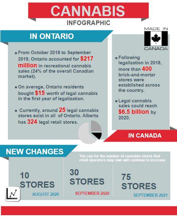 Figure 2. An infographic of cannabis statistics in Ontario and Canada from September 2018 to December 2019.[16]